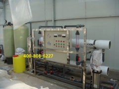 3、加药系统: 包括加药泵、药箱、阻垢剂。用来阻止钙镁离子在反渗透膜表面形成结晶盐。